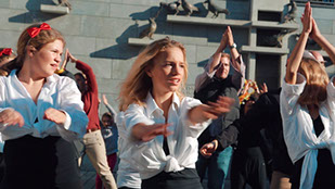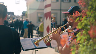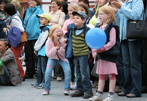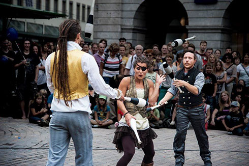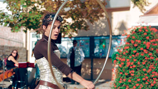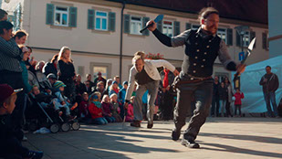 Einweihung der erneuerten Hauptstraße mit Musik, Akrobatik, Kunst und Flashmob.